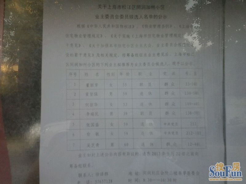 春莘居委会委员分工情况